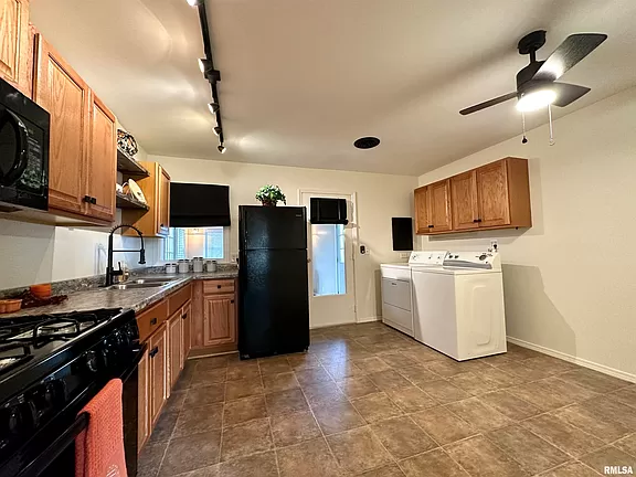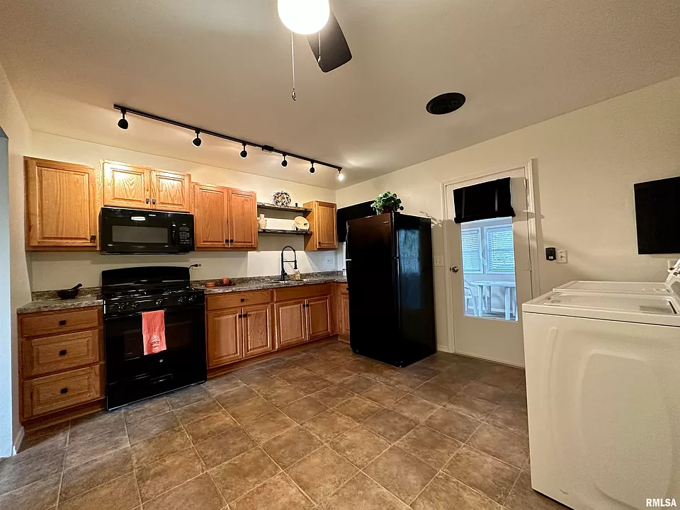 Perfectly preserved, this home stands as a beacon of meticulous care, feeling just as fresh and contemporary as the day it was built. Imbued with modern upgrades such as a newly remodeled kitchen, fresh paint, and plush new carpets, every corner of this abode whispers quality. Enjoy the tranquility of three cozy bedrooms, a full bath, and a serene sunroom, perfect for basking in the morning light. The living space exudes a welcoming aura, enhanced by new ceiling fans that promise comfort throughout the seasons. Step outside to a yard so well-kept, it’s as if autumn leaves dare not touch the ground. A large patio invites outdoor living, while the fenced area, complete with an additional storage outbuilding, offers ample space for both relaxation and activity. The oversized garage with loft storage mirrors the home’s pristine condition, featuring updated vinyl windows that ensure both beauty and energy efficiency. Inside, the convenience of modern living continues with a washer, dryer, and recent kitchen appliance updates, including a refrigerator, gas stove, and built-in microwave. This move-in-ready haven is a rare gem in today’s market, offering a blend of loving maintenance and thoughtful upgrades that is hard to find. Seize the opportunity to own a home where every detail is a testament to unparalleled care. Welcome to your meticulously kept, effortlessly charming new home.
